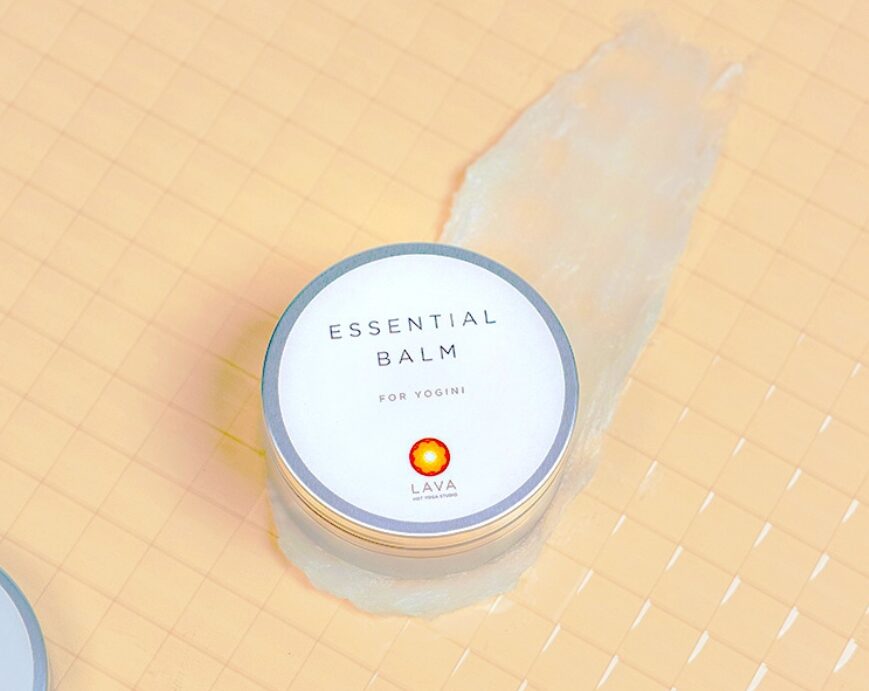 LAVAの店舗やオンラインで販売している「エッセンシャルバーム」を体に塗って受講することで、リンパリフレッシュヨガの効果を高めることができます。
