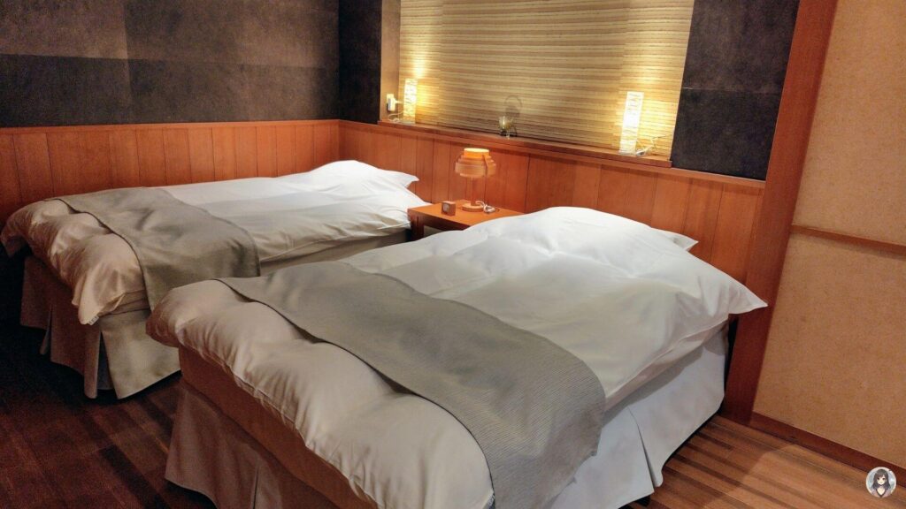 モール温泉とアロマの相乗効果で、心も体も癒される贅沢なひと時を過ごすことができます。スパには待合スペースがありました。