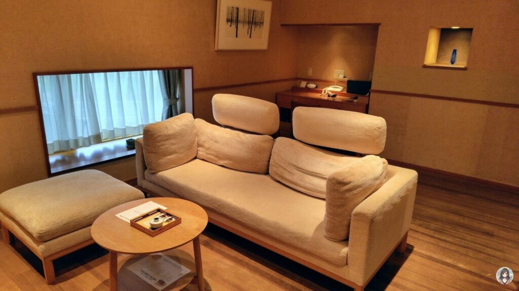 私たちは今回、洋室の一番リーズナブルなお部屋を予約しました。リーズナブルと言っても、部屋に源泉かけ流しのお風呂がつくというプレミアなお宿です。