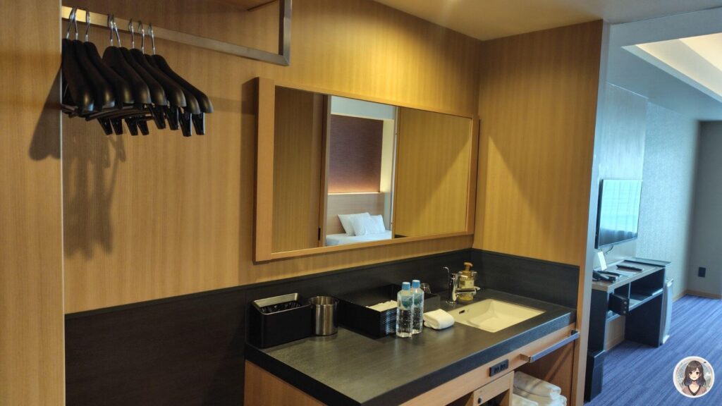 お部屋はビジネスホテルのように、想像していたよりもコンパクトな構造でした。海と灯は2021年にオープンしたこともあり、全体的に設備は新しくてとてもきれいで気持ちが良いです。