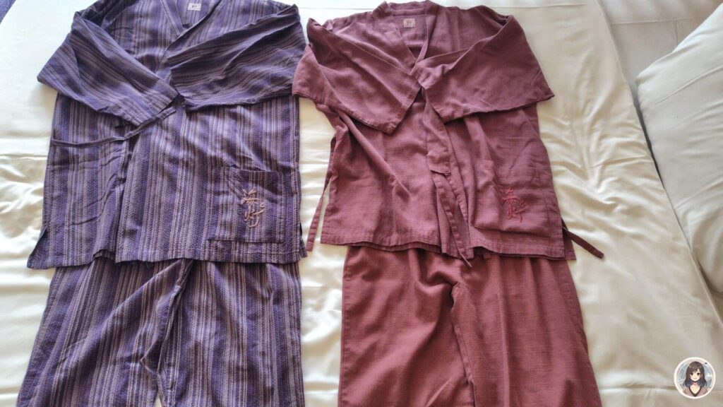 海と灯では、館内着(部屋着)は上下が分かれた作務衣タイプでした。