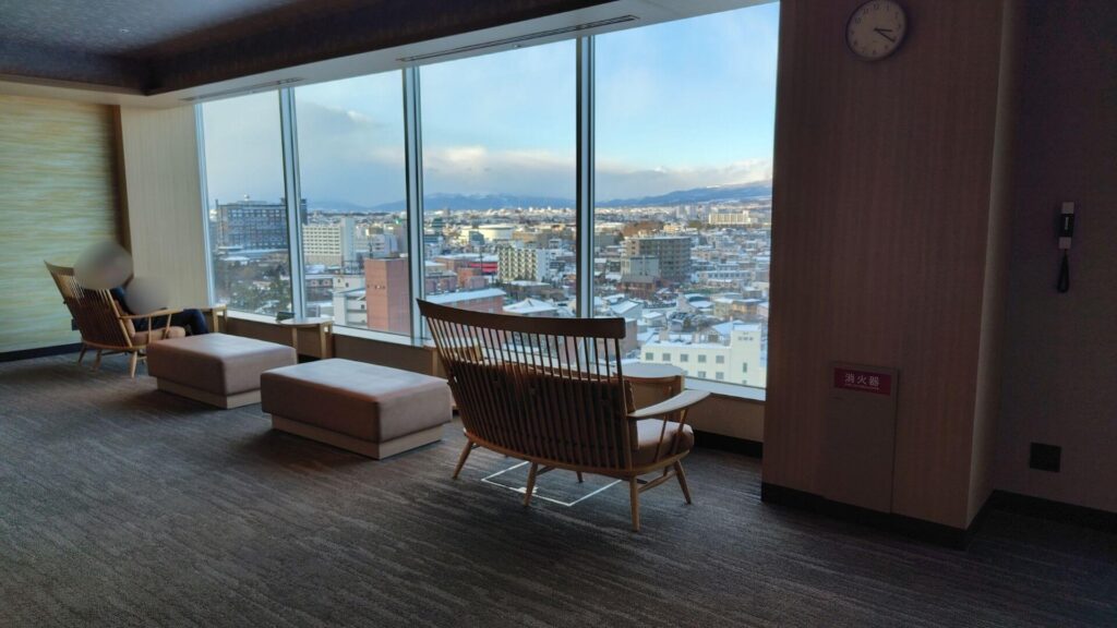 ソファからの景色は函館山と逆側のため残念ですが、12階からの絶景を楽しむことができます。